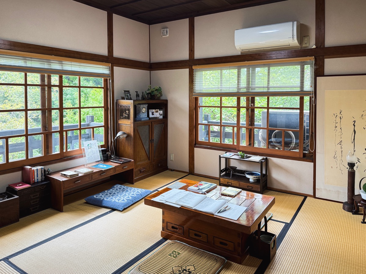 昭和10年に建てられ、太宰治が滞在・執筆した「碧雲荘」。かつては東京の杉並区にあったこの建物を、間取りや方角をそのままに移築したのが大分県にある「ゆふいん 文学の森」です。