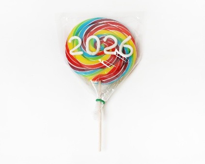 昨年も好評だった “西暦入りのレインボーロリポップ” が今年も登場。直径約15cmの超BIGサイズで中央には「2026」の文字をあしらっています。目を引くデザインなので新年のパーティーにもよさげ。