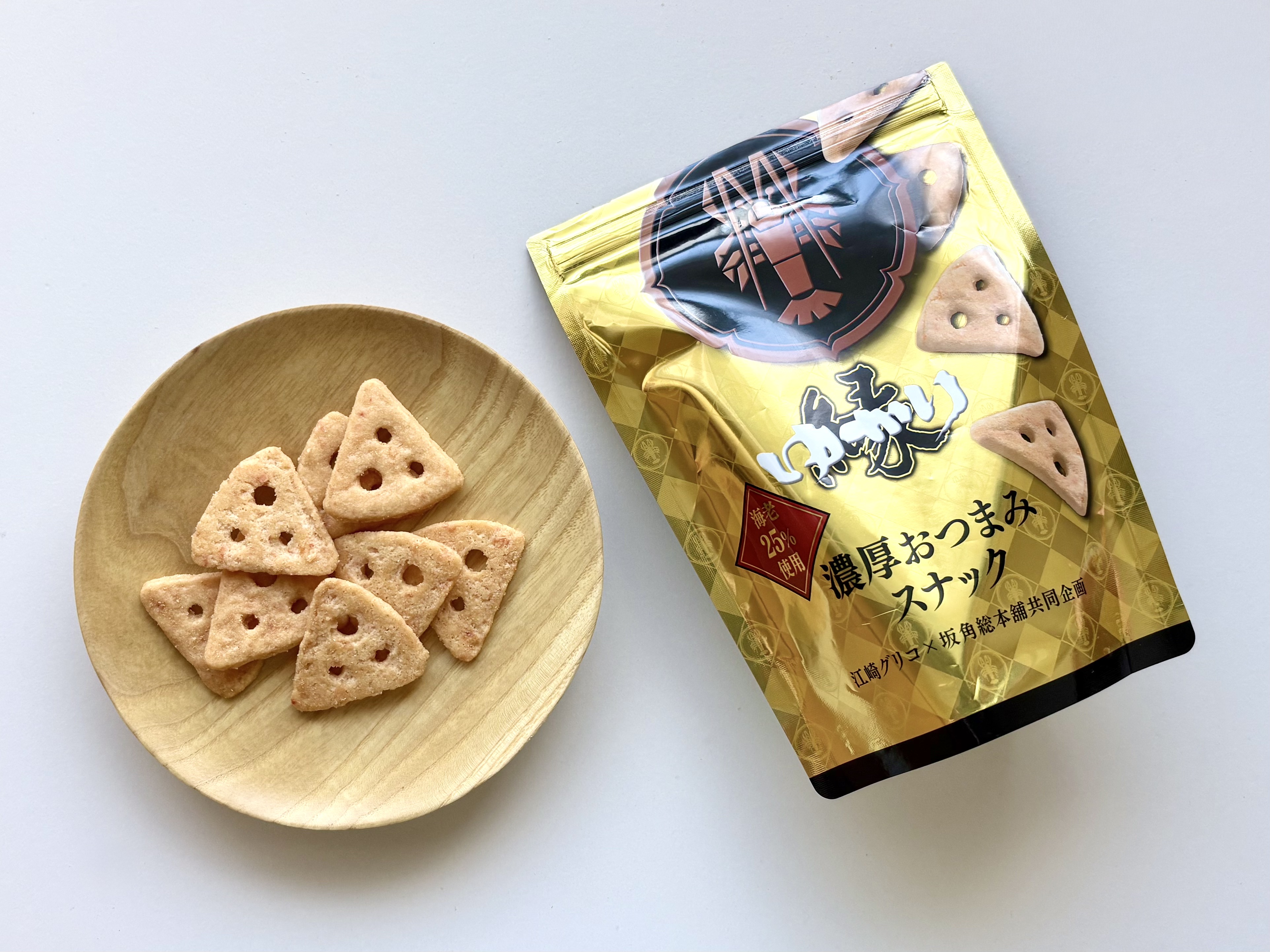 海老が25%使用されているというだけあり、食べ終わったあとも海老の風味が余韻として残ります。おつまみスナックとはいえ、ノンアル派の私はおやつとして楽しんでますよ。