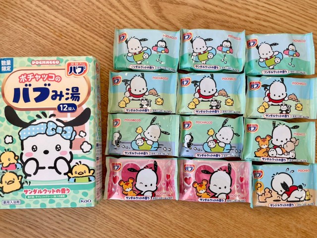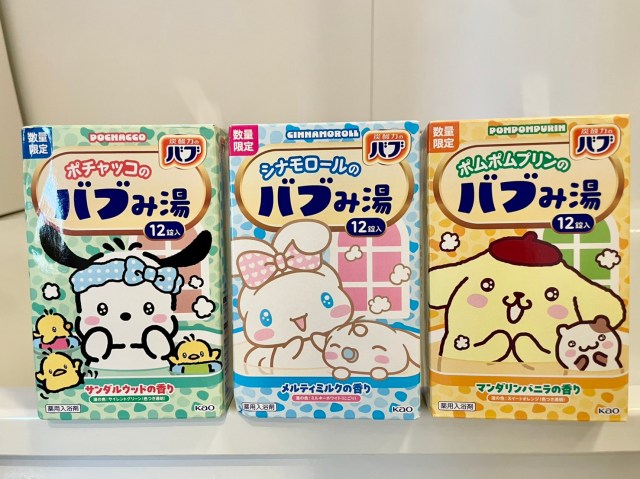 今回発売された「バブみ湯」は香りやお湯の色が違う3種類。去年発売したポムポムプリン、シナモロールに続き今年はポチャッコが仲間入りしたんですって。