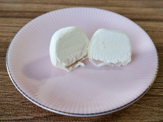 半分にカットしてみると、ミニサイズでもしっかりと雪見だいふく。変わらずおいしそうです。