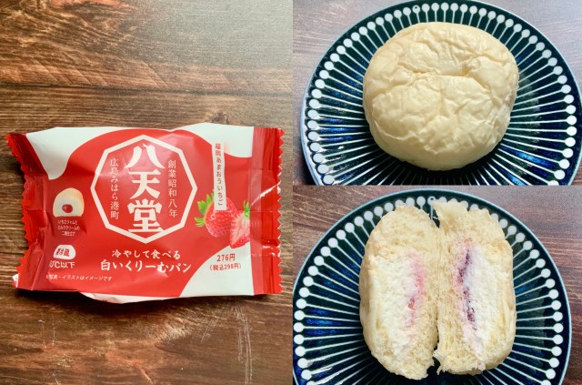 ◼︎「八天堂 冷やして食べる白いくりーむパン 福岡あまおういちご」(276円)
