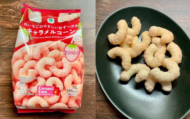 ◼︎「白いちごのやさしい甘ずっぱさ キャラメルコーン」(128円)