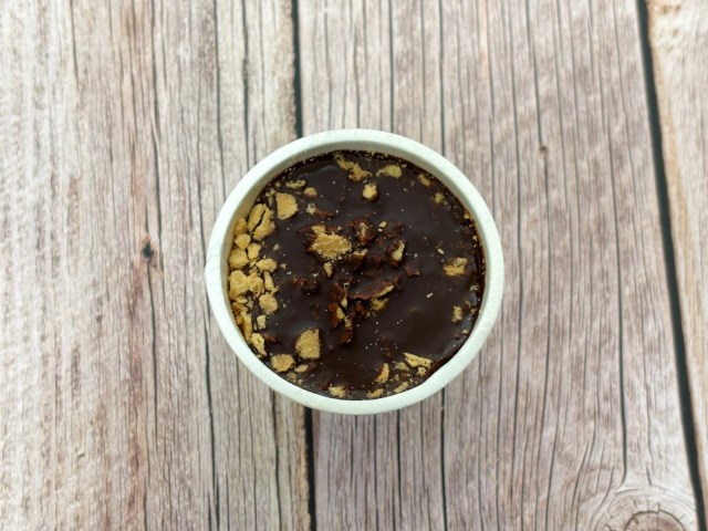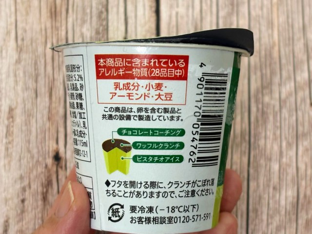 実はこのアイス、チョコの層の中に「ワッフルクランチ」というワッフルコーンを砕いたようなクランチが入っているんです! どうやらこれがカダイフの役割を果たしている様子。