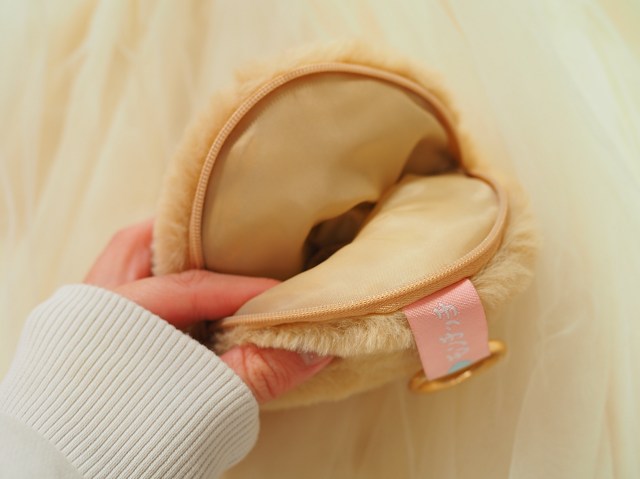 ポーチは見た目通りのボリューム感で、厚みたっぷり、中までフワフワ。髪の毛とポーチのフワフワ感に、使う前から大満足な気持ちだよ〜。