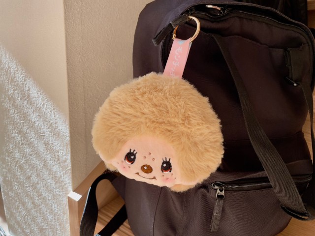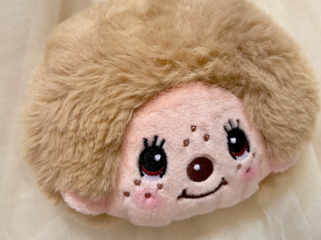 まずはフェイスポーチチャームからチェック。フワフワで愛くるしいモンチッチのお顔がぬいぐるみのようなポーチになっちゃいました!