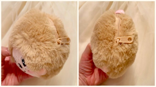 中に物を入れてチャックを閉めると、見た目のぬいぐるみ度はさらにアップ! 前から見ても横から見てもモッフモフのモンチッチを堪能できますわよ〜。