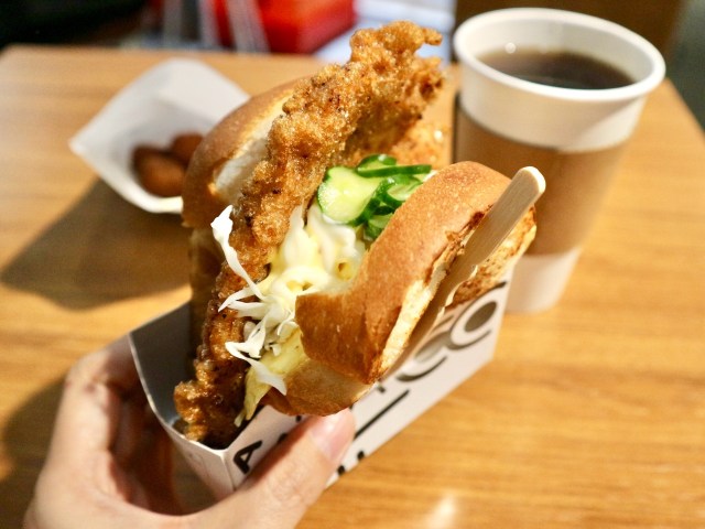 ポークカツがドーンと豪快に挟まれていて、インパクト抜群だったのです……!