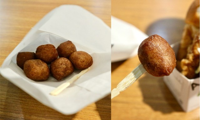 続いては、タロイモボールを。タロイモのペーストをひとくちサイズに丸めて揚げているようで、表面にはこんがりときれいな焼き色がついています。