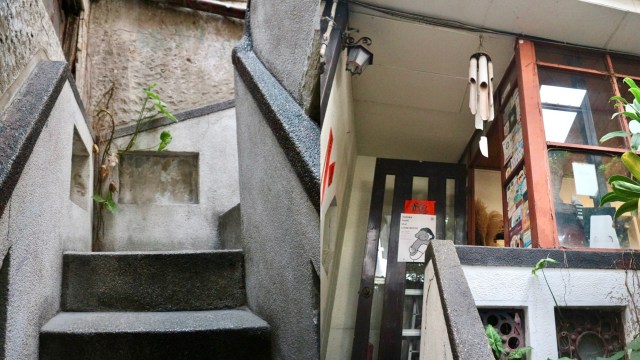 ……と思ったら、この方はお店のお客さんではなかったようで、そのままどんどん奥へ。ですが歩いている途中、ちゃんとお店の看板と2階へ上がる階段を発見できました。