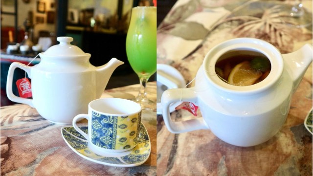 しばらくすると、ドリンクが到着。フルーツティーは、ポットにたっぷりのフルーツと一緒に淹れられていました。