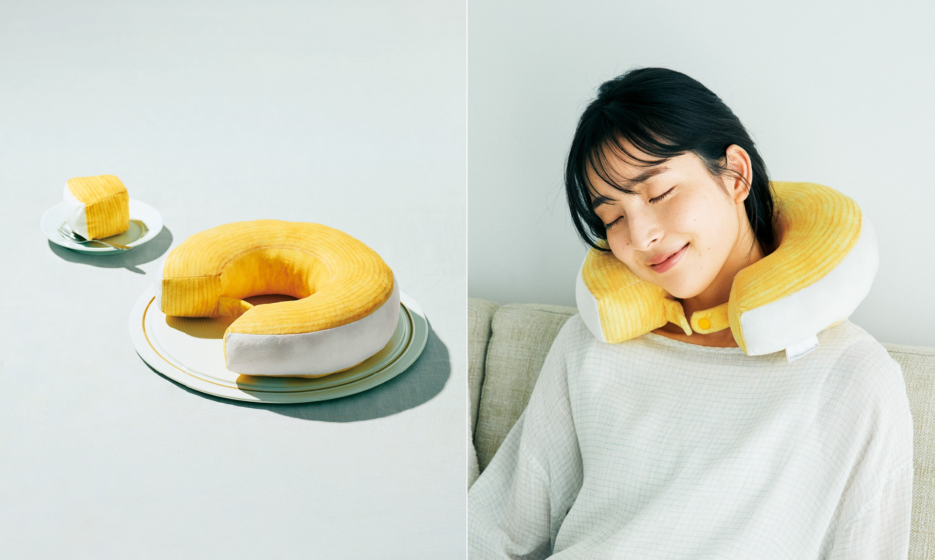 そんな思いを込めてつくったというフェリシモの新商品 “バウムクーヘンのネックピロー” 。いつもながら偏愛すぎる……もとい、マニアックな発想ですが、見ているとじわじわ欲しくなる。「あれって、もしかしてバウムクーヘン?」といった具合に、周囲の人たちをモヤモヤさせちゃいましょう。