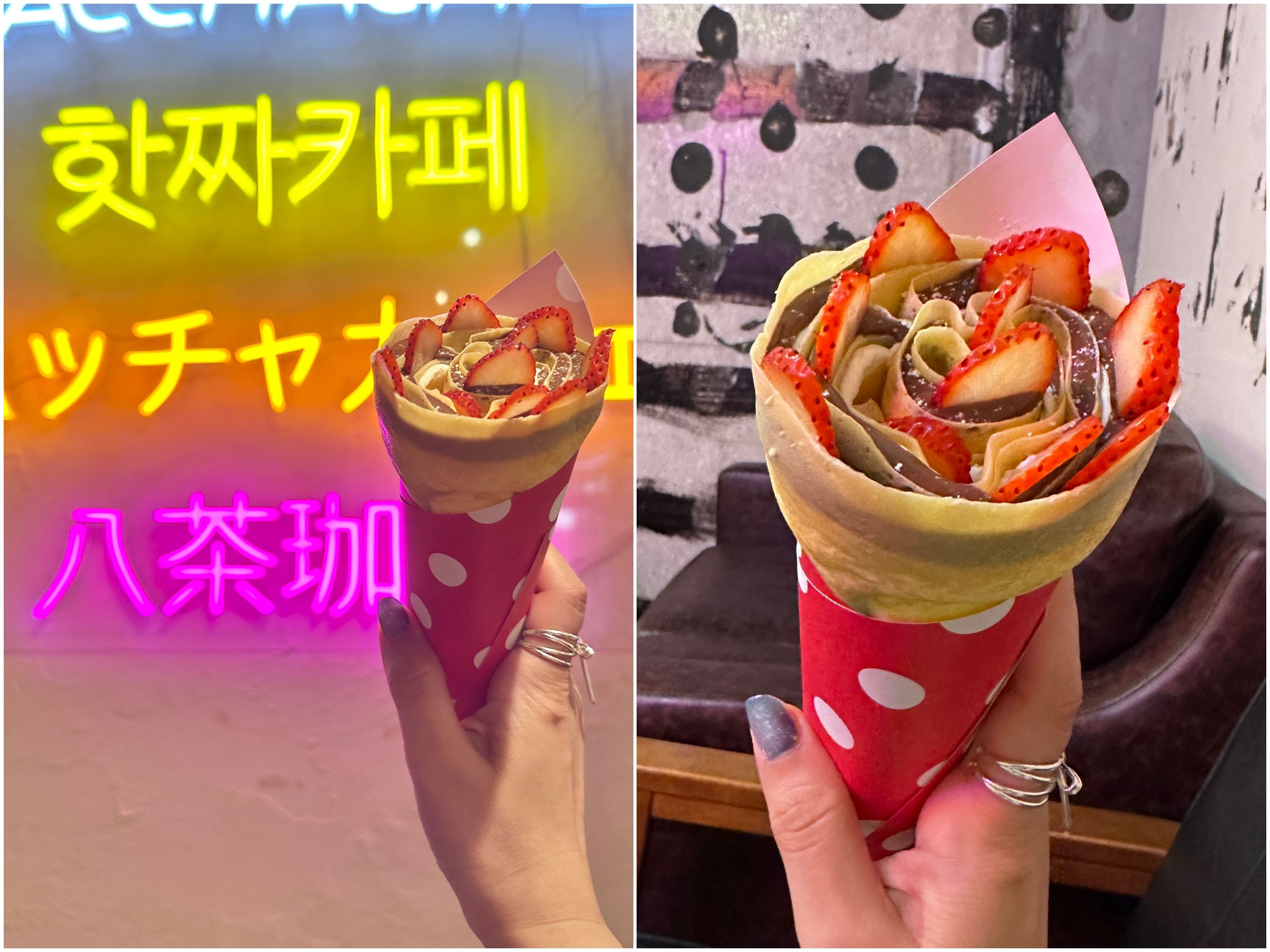 かぶりつくと、米粉のクレープ生地がもっちり。ヌテラの甘さといちごのさわやかさ、生地のしっとり感が相まってジャンクだけどどこか上品で……う〜ん、おいしいっ♡
