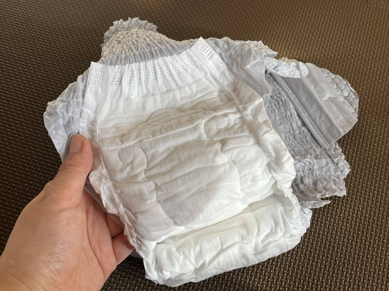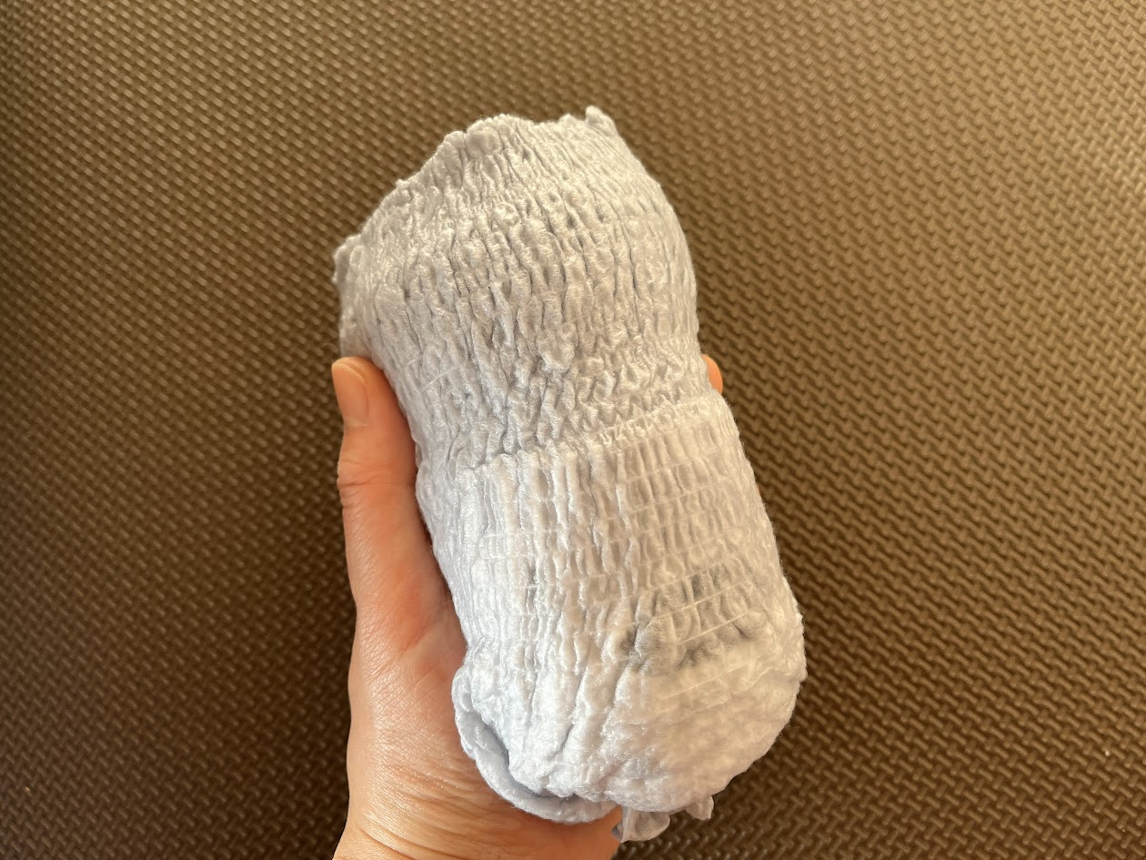 慣れてしまえばササッと交換できるので、外出しているときでも使いやすいんじゃないかと思います。ただ出先で使うとなると……持ち歩くにはまあまあデカいのでバッグは大きめがいいかも。ちなみに、厚みは夜用ナプキンと同程度です。