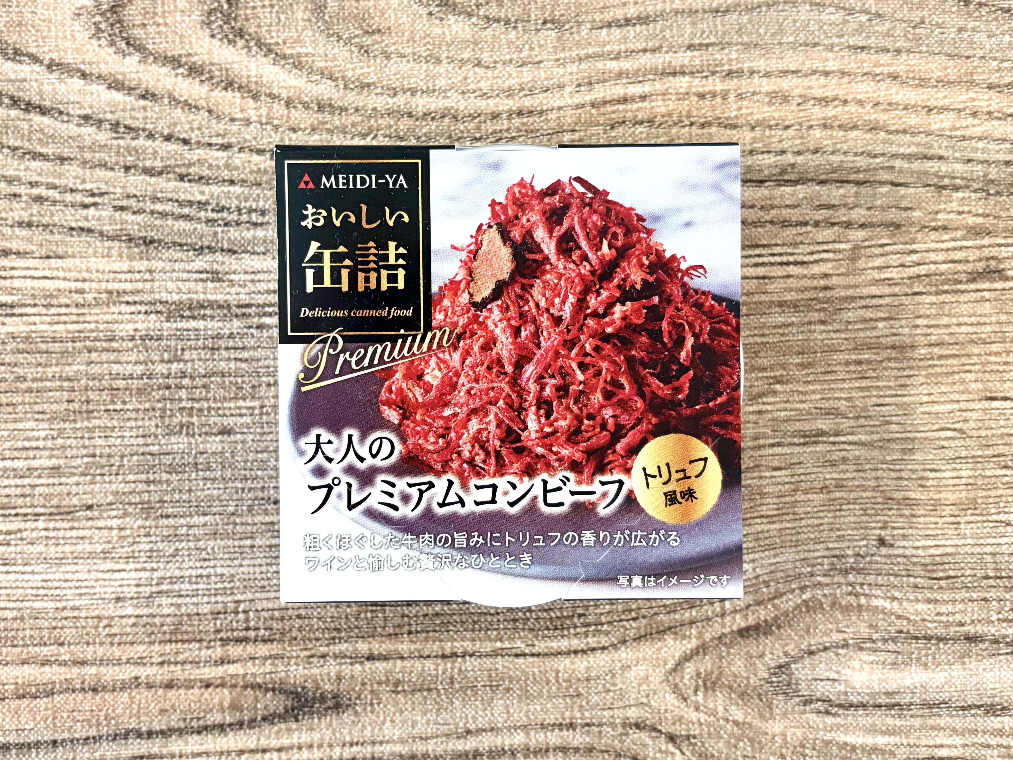 ちょっとお高いけど良いものがそろう明治屋で、気になる缶詰を見つけました。それが「大人のプレミアムコンビーフ(トリュフ風味)」。