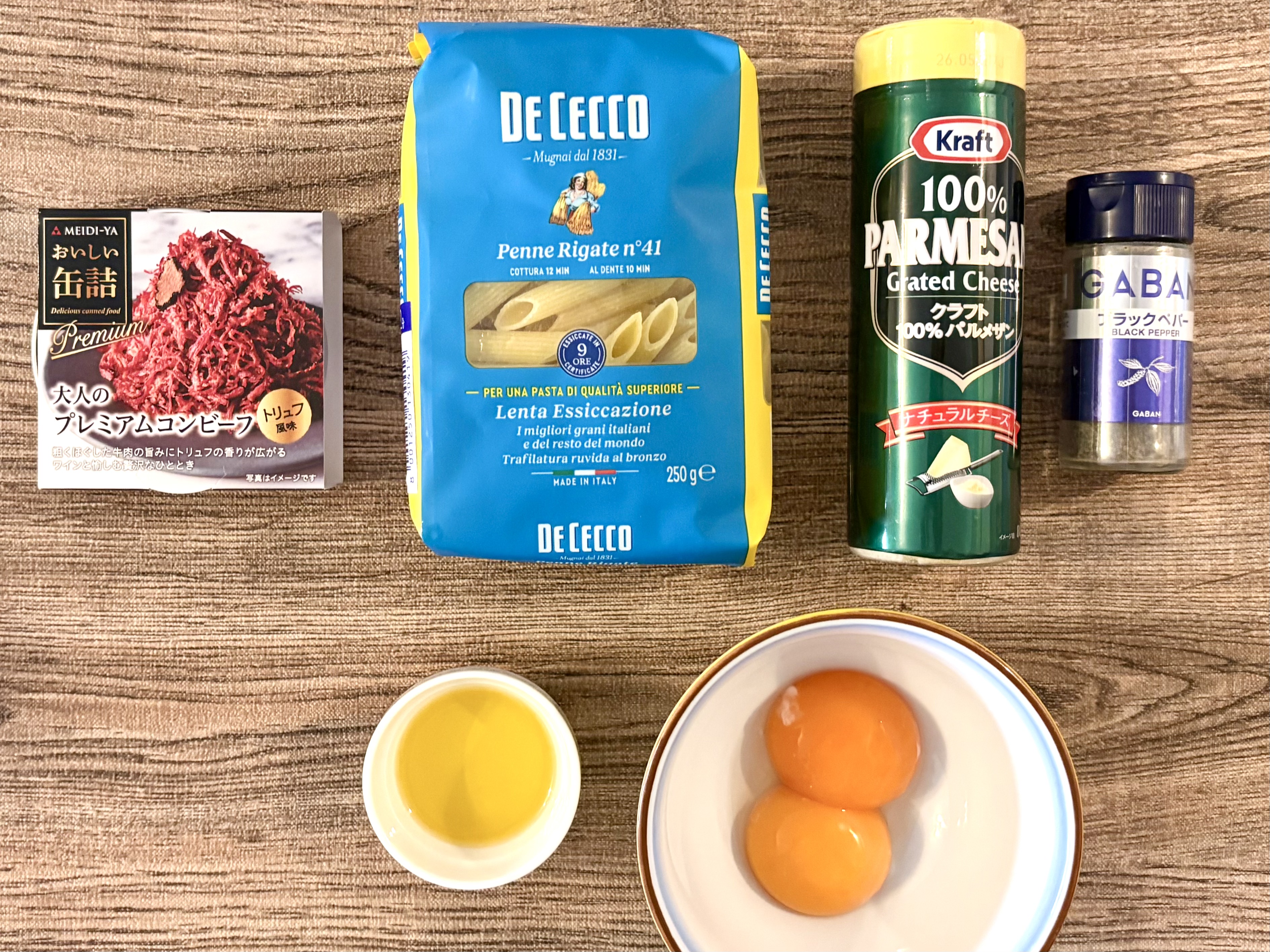 せっかくならこのコンビーフで料理を作りたいなと思ったら、明治屋の公式サイトで「トリュフ香るプレミアムコンビーフのペンネ・カルボナーラ」なるアレンジレシピを発見!