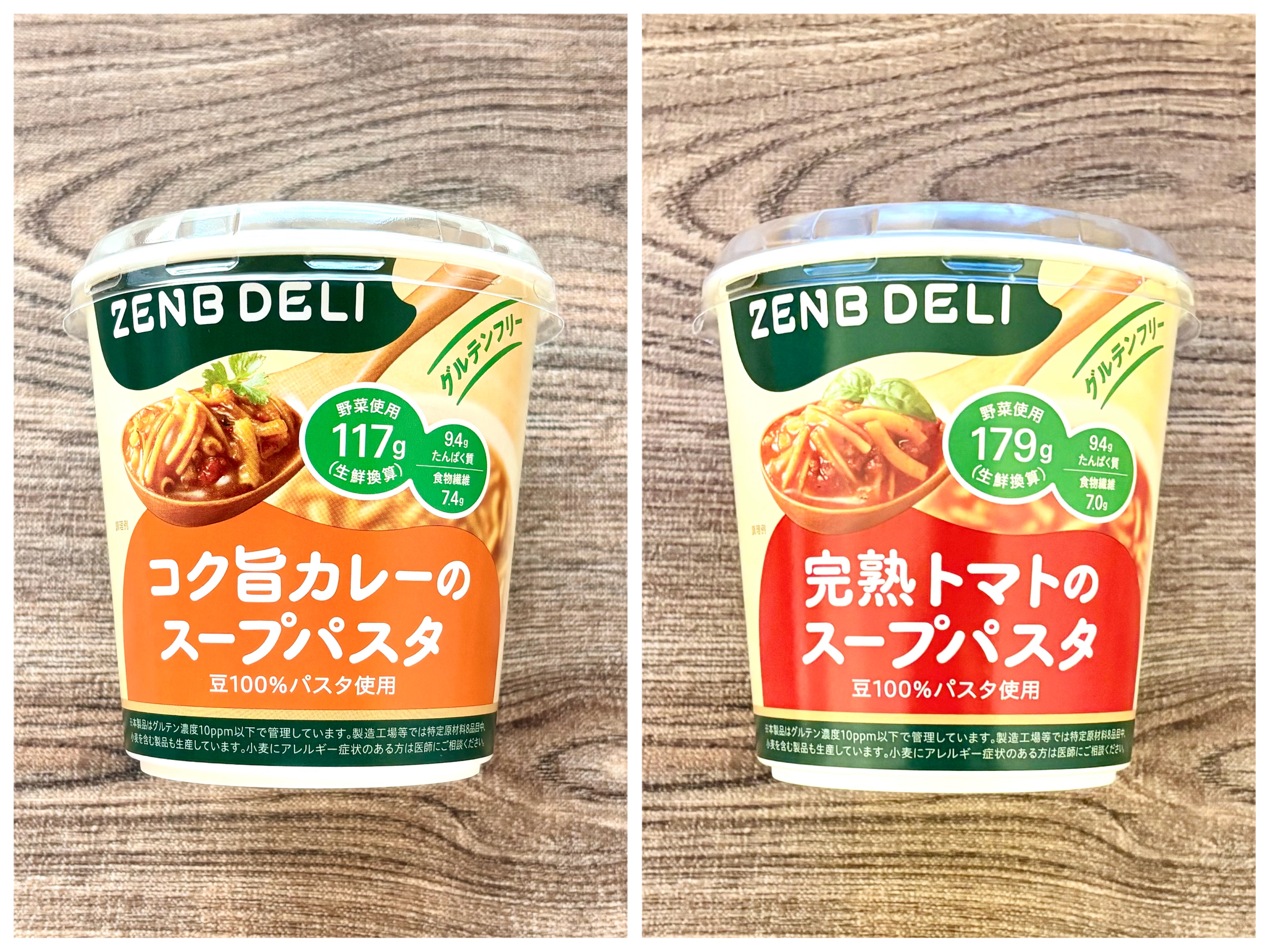 ZENBのカップスープパスタは、全部で2種類。“コク旨カレー” と “完熟トマト” があります。