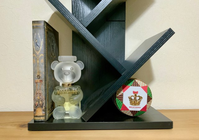 また、1番下の段は高さがなく支えもないので本を置くには不向きですが、香水などの小物を飾るのにちょうどいいスペースでした♡