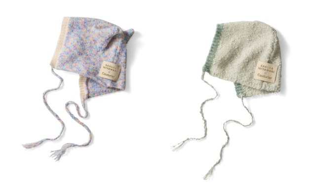 太さや素材の異なる糸をより合わせた「ファンシーヤーン」を使用。猫耳付きの〈ブルーミックス〉、ポコポコ毛糸の〈ライムグリーン〉ともに宮脇さんの私服からイメージされていて、ストリートやカジュアルなどどんなファッションにも合わせやすそう!