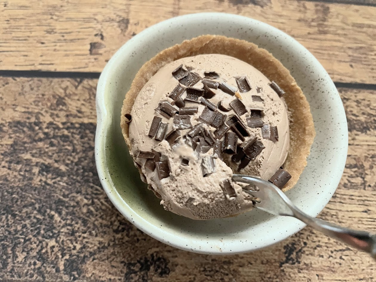 タルト生地にTop’sのチョコレートケーキをイメージしたチョコクリームをしぼり、チョコチップをトッピングした1品。