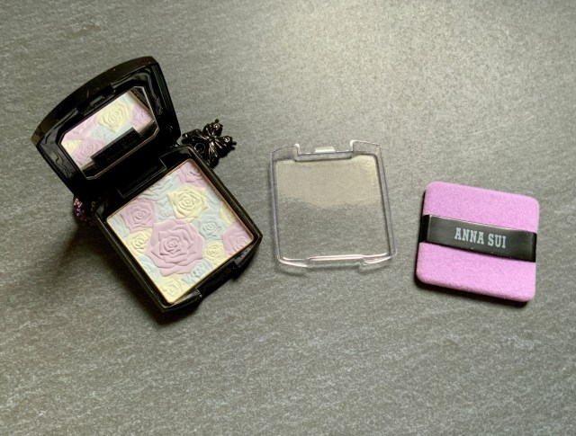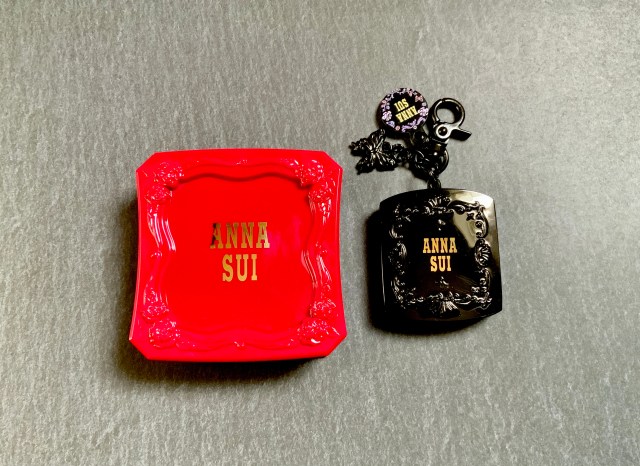 種類は違いますが参考までに手持ちのアナ スイのパウダーケースと並べてみると……プラスチックの質感や複雑なデザインの装飾まで、かなり再現度が高いとわかります。