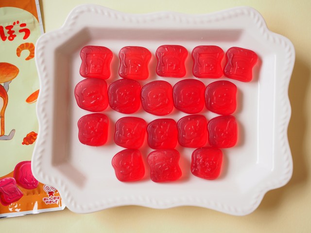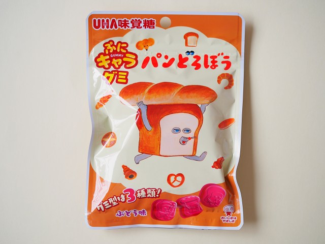 絵柄は絵本に登場する3種類のパンどろぼう。少しお顔が見えづらいのと、中にはかなりお顔がくずれちゃっているパンどろぼういるのがちょっと残念かも……と思いつつ、家族でパクパク食べたくなるグミでした◎