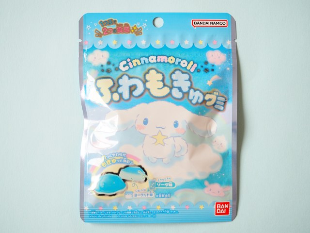 パケ買い必至なシナモロールのヨーグルト×ソーダ味のグミです。こちらを見つめてくるシナモンのピュアなおめめを見てほしい…………!!