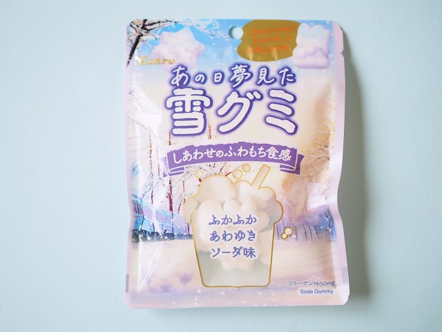 「あの日夢見た〜」シリーズの新作は、雪グミ! パッケージも淡い雪の風景が相変わらずエモかわですっ。