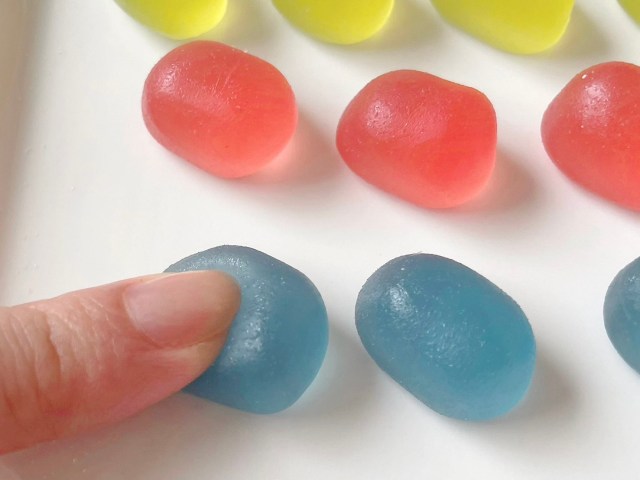 お味はマスカット味、ラムネ味、ストロベリー味の3種類。小粒でカラフルな見た目はジェリービーンズのようで、ここまではヨギボーらしさはあまり感じないのですが……。