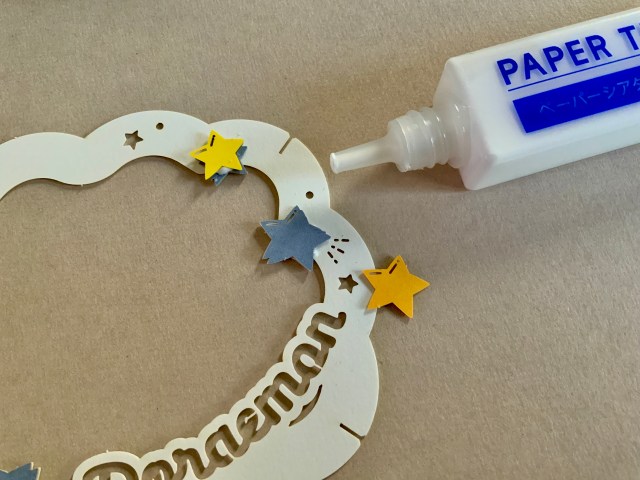 切って重ねて貼って繋げる……と、難しい工程は何ひとつないのですが、とにかくパーツが細かい! 貼り付けるのも繊細な作業だし、ちょっとした風で飛んでいってしまいそうになりました。