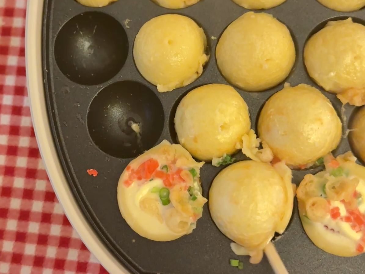 ただ、たこ焼きプレートの縁の高さはあまりないので、生地を溢れさせすぎるのは要注意。