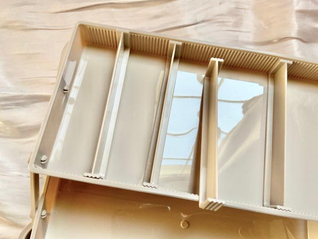 両サイズともに取り外し可能な仕切りが4枚付いています。上段と中断には内側に細かな溝があり、仕切りを好きな場所にセットすることができました。