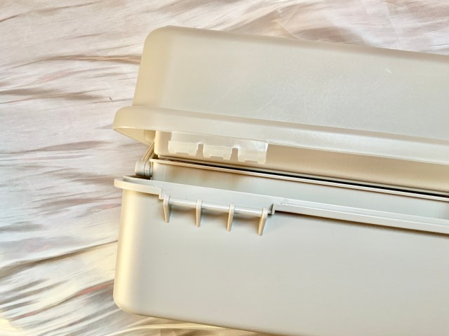 デザイン・機能はどちらのサイズも共通で使いやすいのですが、ミニサイズはフタが外れることにストレスを感じたかな〜。もちろん収納したい小物のサイズにもよると思いますが、パーツ同士のつながりが弱いので、耐久性もちょっと心配になりました。