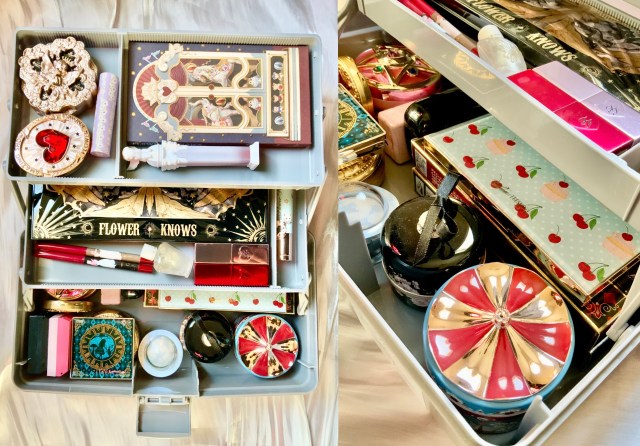 大きいサイズのアイシャドウパレットから高さがあるパウダー、細長いスティック状のアイテムまで、あらゆる形のコスメがシンデレラフィットしたり、うまく収まって気持ちいい〜!
