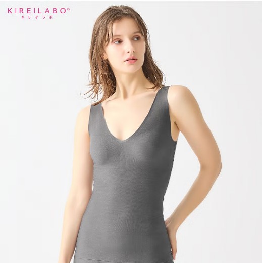 オーガニックコットンを使用した、縫い目のないシェイプ機能付きブラトップ。脇や背中のラインをすっきり整えて「脇肉の段差」を解消します。同じシリーズのガードルとセットでも着用できるそう◎。