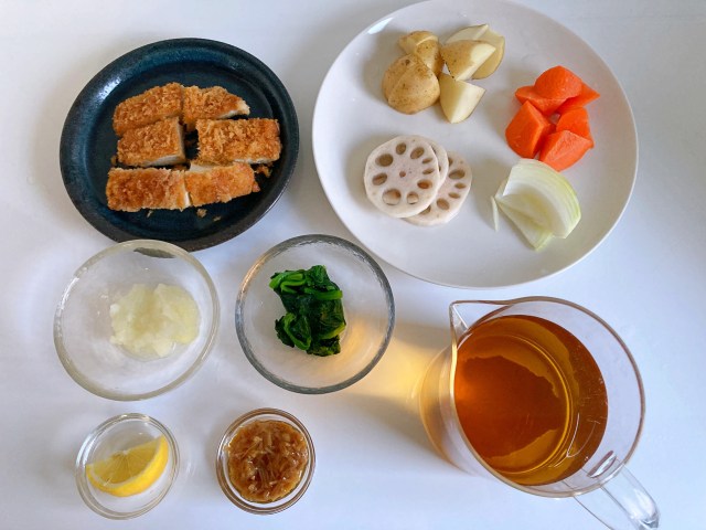 こうして並べると、コメント欄の「作りたいけど揚げるのがめんどうで、結局いいやってなりそう」と思う気持ちも、正直わかります。そこで今回は、最大の難関であるチキンカツを自作せず、スーパーのお惣菜コーナーで調達してきました。
