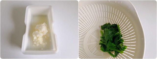 大根は皮をむいて大根おろしに。 ほうれん草はさっと茹でておきます。
