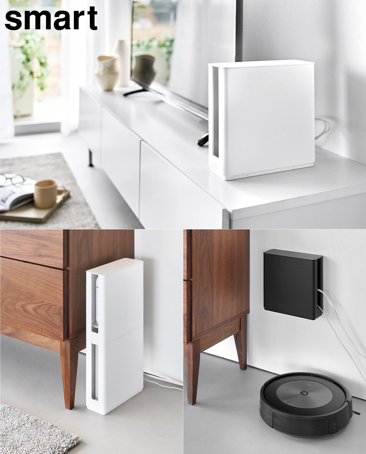 Wi-Fi(大型サイズ含む)に対応した、ルーターとケーブルを隠して収納できるケース。ホコリよけに便利な蓋付き+蓋を外せば2個重ねて収納することも可能。さらに、付属の石膏ボードピンを使用すれば壁面収納もできちゃいます。