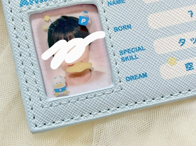 ケースはペックルにお似合いの水色。しっかりとした合皮素材で、マイナンバーカードのカバーとしても安心して使える印象です◎
