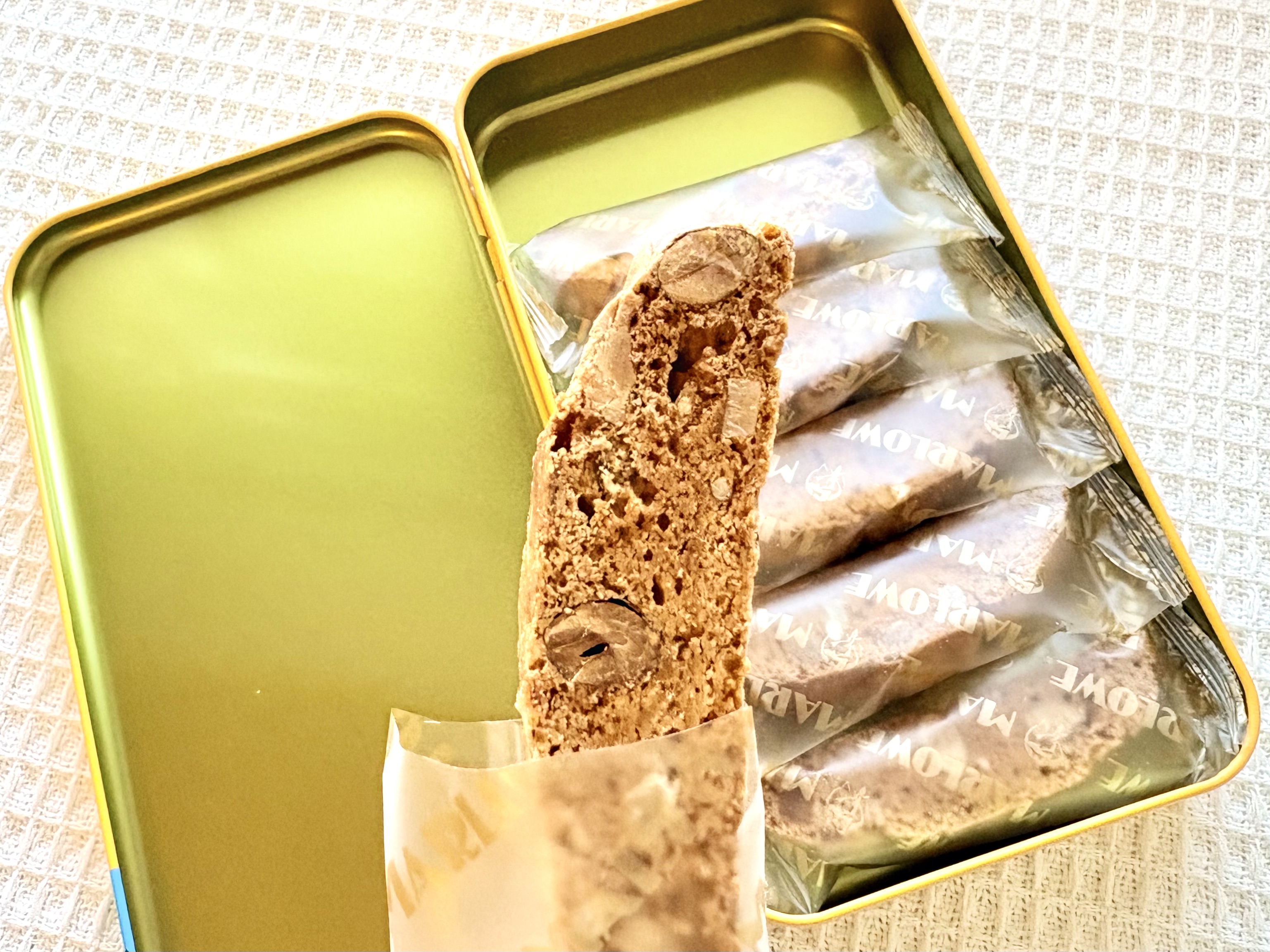 イタリアの伝統的な焼き菓子であるビスコッティ。マーロウでは3種類の小麦粉を独自にブレンドして焼き上げているということで、もうね、風味の良さが抜群なんですよ。ずっと噛みしめていたいと思うほど!