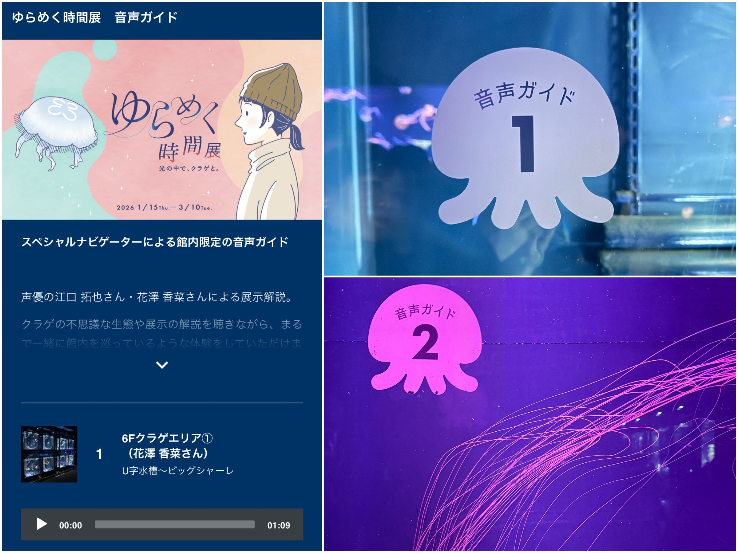 おふたりの声がなんとも魅力的……番号に沿ってクラゲの特徴や生態の解説を聞けば、まるで一緒に展示をめぐっているかのような没入感が味わえます♡