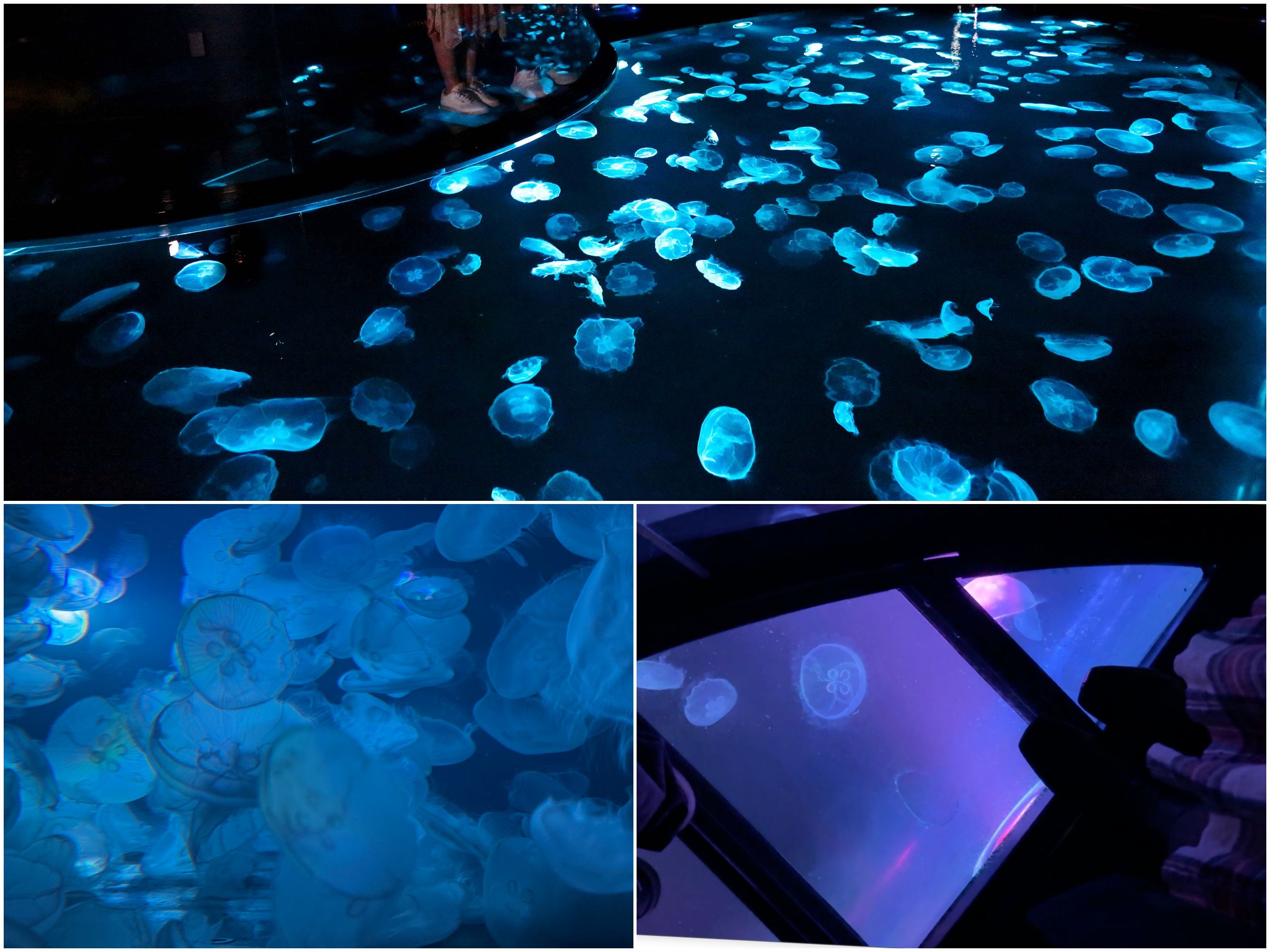 そしてそして、クラゲエリアの目玉ともいうべき「ビッグシャーレ」! 平たくて大きな水盤型の水槽は上から見るのが人気ですが、横から見ても幻想的なのでぜひ試してみて。