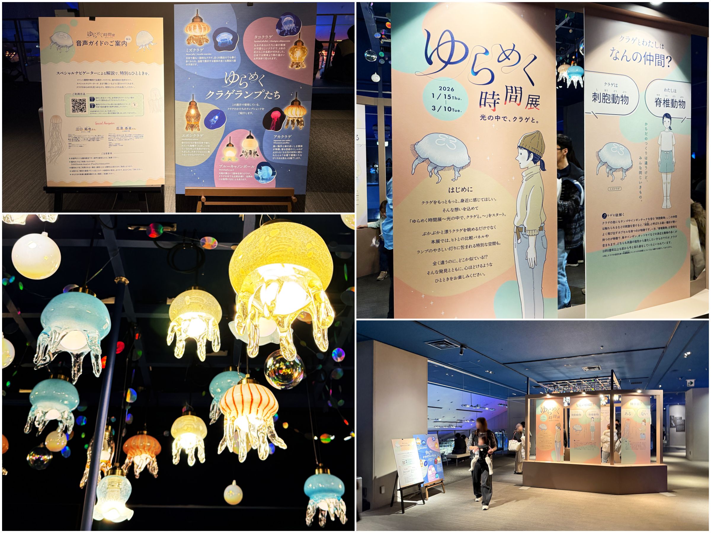 さらに進むと特設パネル展示エリアが。意外と知らないクラゲのあれこれを「ヒト」と比較しながら、やわらかなイラストで学びましょ♪