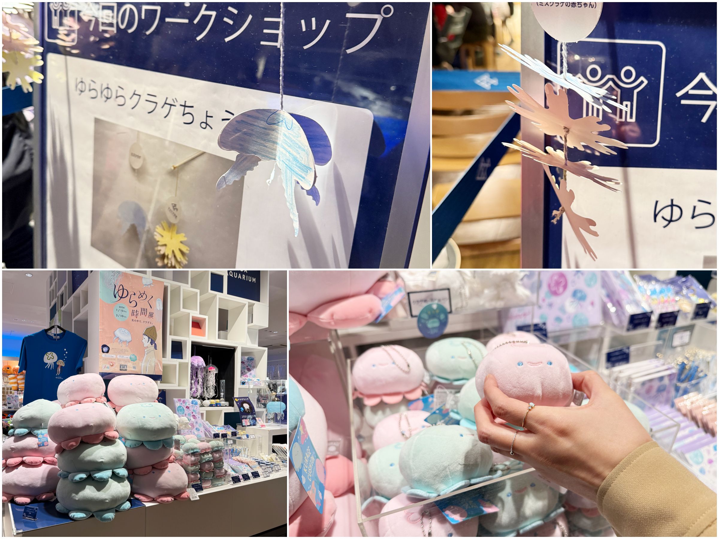隣接のスペース「アクアアカデミー」では無料のワークショップも開催されているほか、ショップには可愛いクラゲちゃんグッズも満載。ぜひ心ゆくまで、クラゲとのひとときを楽しんでくださいね〜!