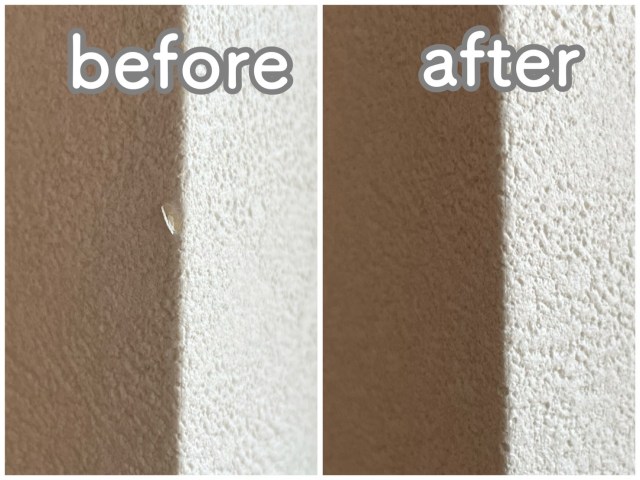 一瞬の作業だけで数カ月気になっていた壁のダメージがキレイに補修できちゃうなんて、もっと早く取りかかっていればよかったな〜!