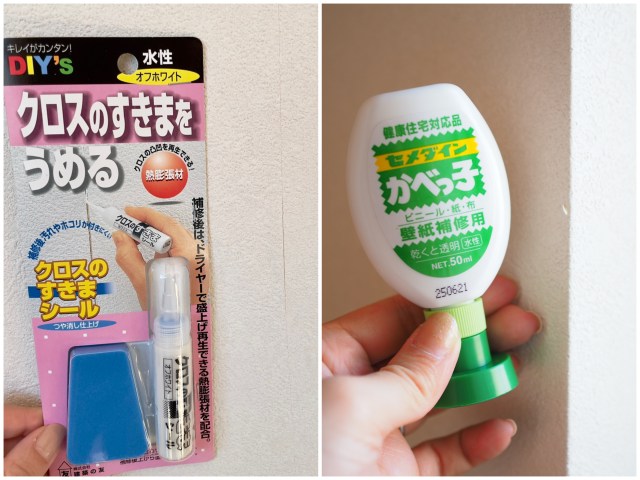 お家の気になる箇所から、賃貸なのに壁がめくれてピンチ!なときなどなど、色々なタイミングで救世主になってくれるはず。それぞれおサイズも小さいので、ひとつ持っておけば安心ですよー!