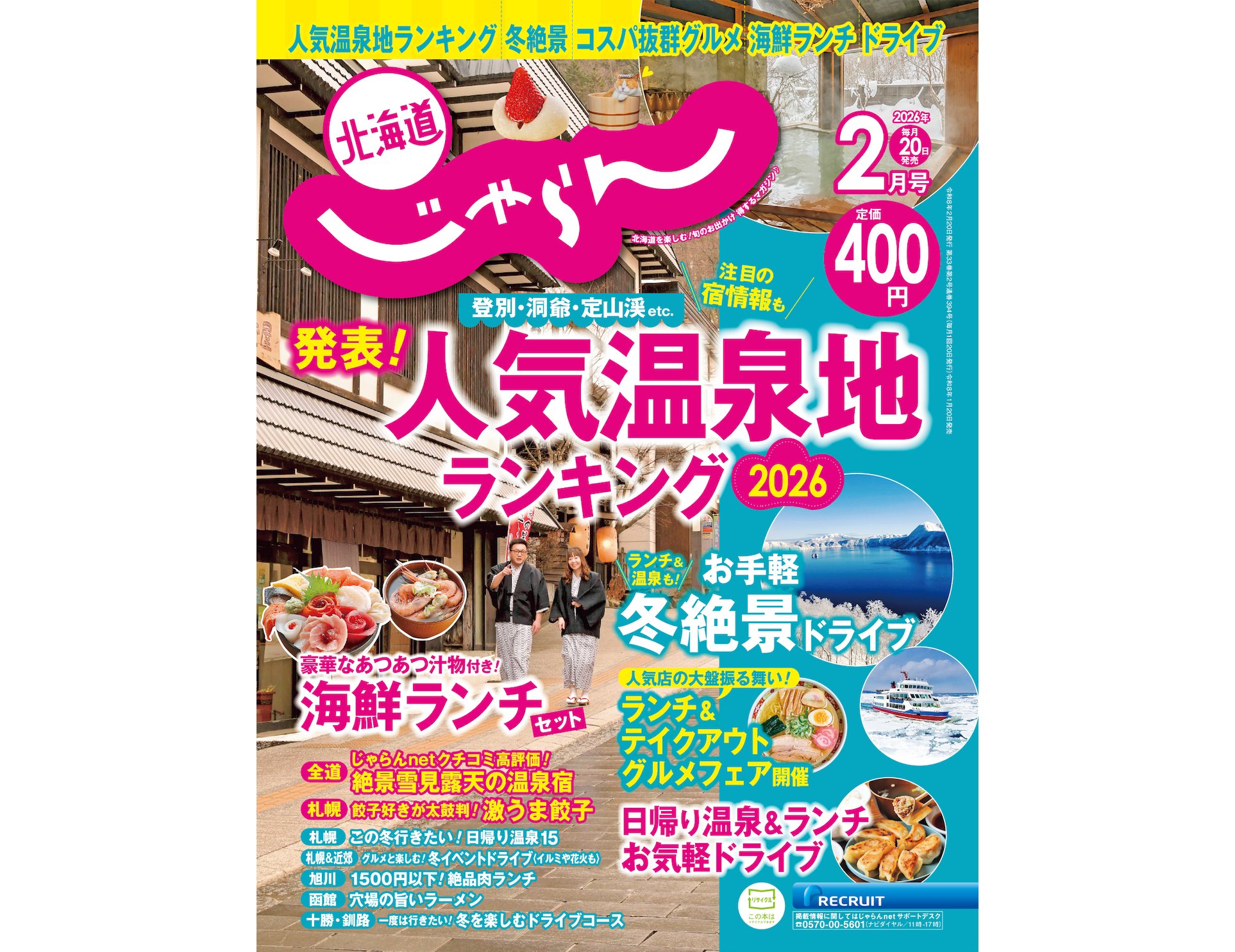 ちなみに、『北海道じゃらん』2026年2月号(2026年1月20日発売 / 税込400円)では、今回ピックアップした5施設を含む特集記事「全道 雪見露天の温泉宿14」を掲載しています。お手頃価格の宿や口コミ評価の高い温泉宿も紹介しているらしく、こちらも要チェックといえそうです。