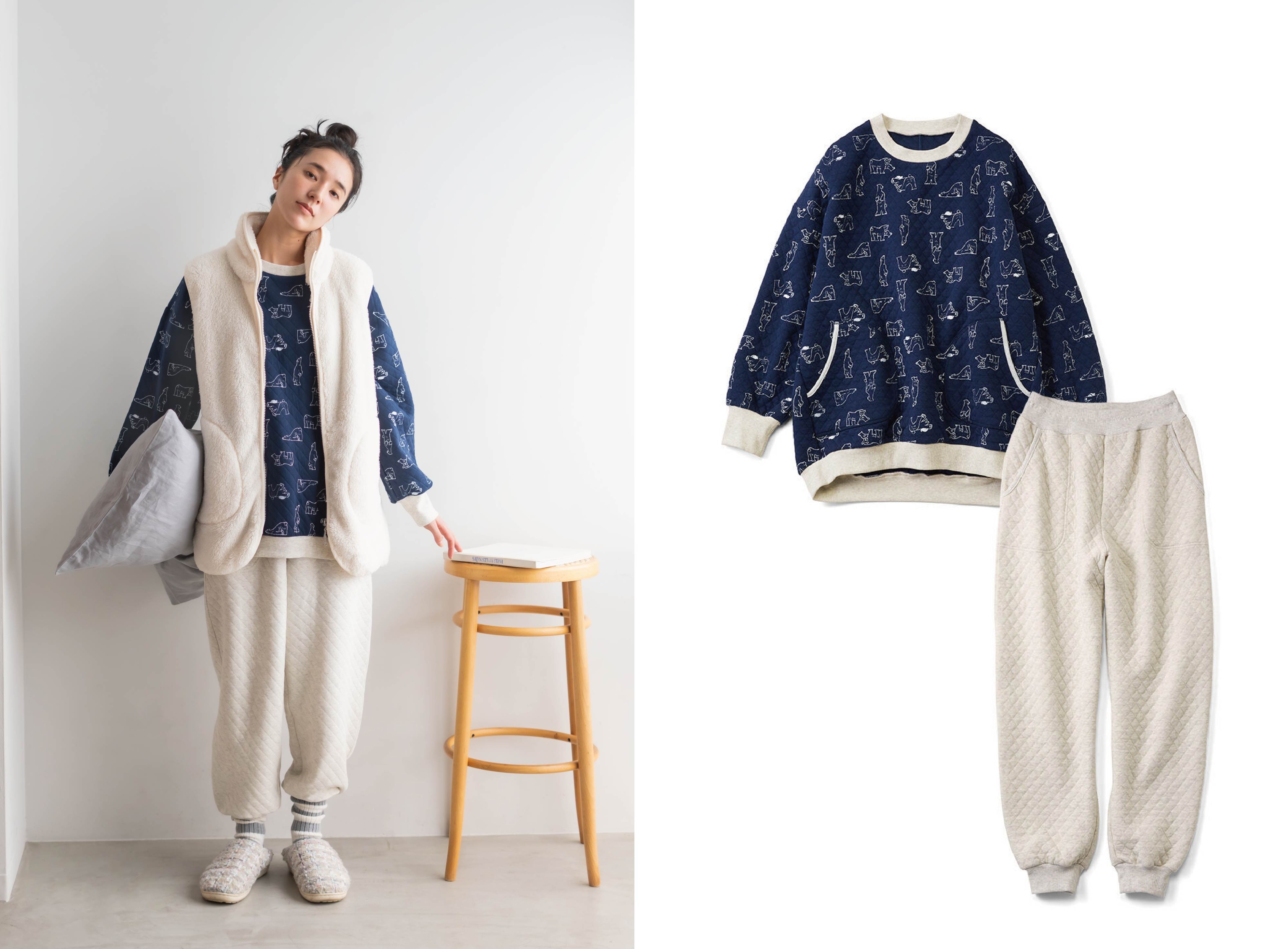 ■<リブ イン コンフォート>ホッキョクグマのキルティングパジャマ