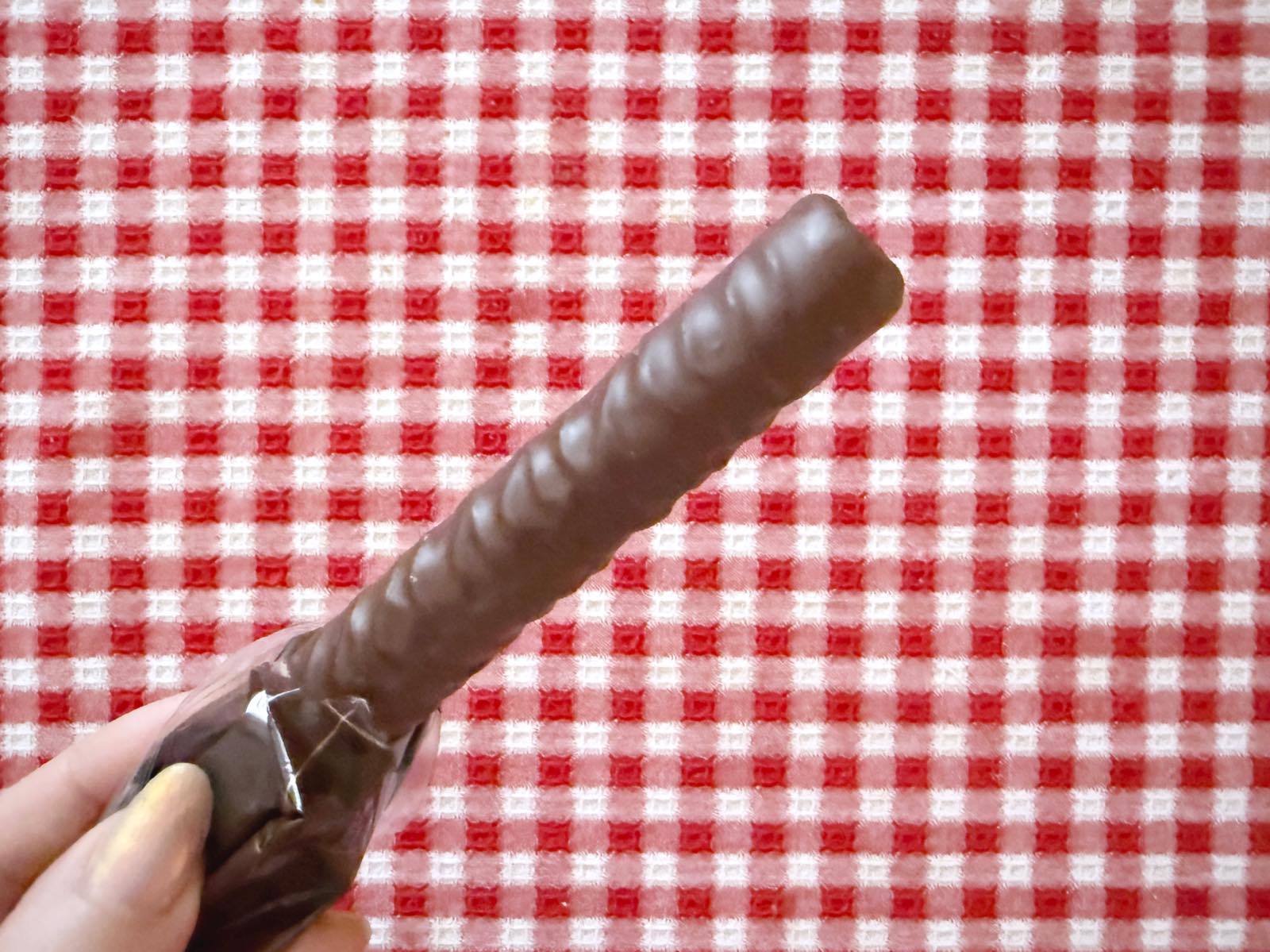 ヨックモックの定番「シガール」にたっぷりとショコラをまとったリッチな味わいとのこと。編集部にご提供いただいた商品をさっそく食べてみました!