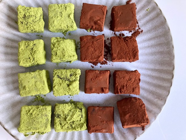 ⑤仕上げに、ココアパウダーや抹茶パウダーをまぶします。